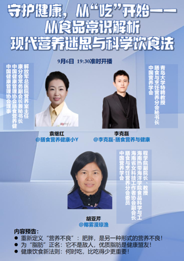 公司胡亚芹教授科普大讲堂直播开讲:科学解读饮食健康,击破营养认知误区